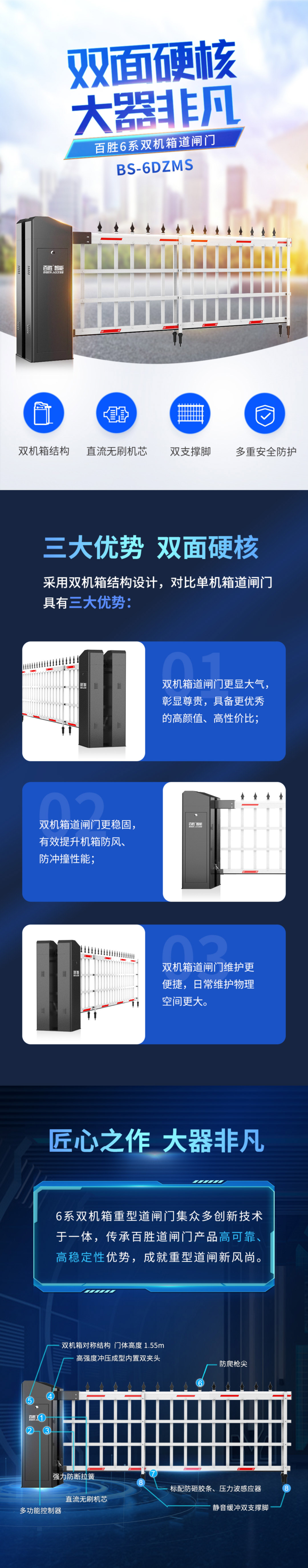 雙面硬核丨大器非凡丨百思德BSDOOR6系雙機(jī)箱道閘門6DZMS新上市!