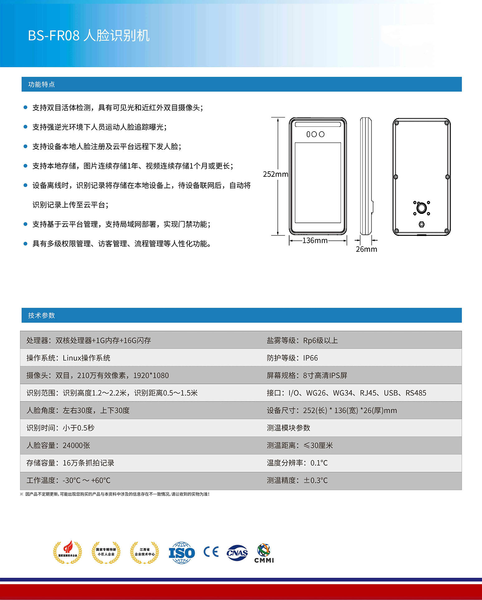 ● 支持雙目活體檢測(cè),具有可見(jiàn)光和近紅外雙目攝像頭;