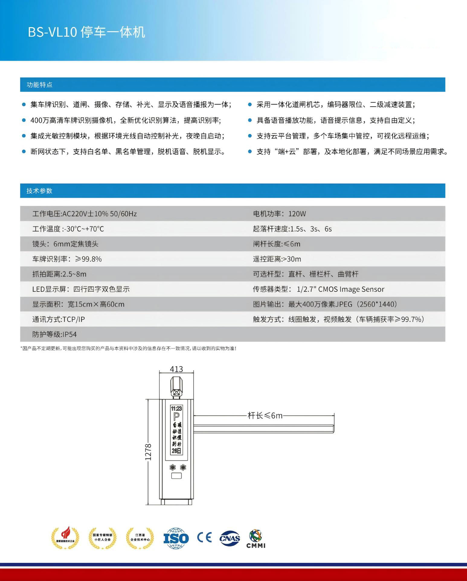●集車牌識別、道閘、攝像、存儲、補(bǔ)光、顯示及語音播報(bào)為一體;